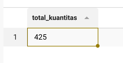 total_kuantitas, sehingga dalam hasil query, kolom yang menunjukkan total kuantitas akan diberi namatotal_kuantitas.